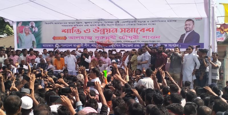 The peace and development rally was held at the Mangal Sikdar Bazar in Dhauligar Nagar union under Lalmohan upazila of the district this morning.