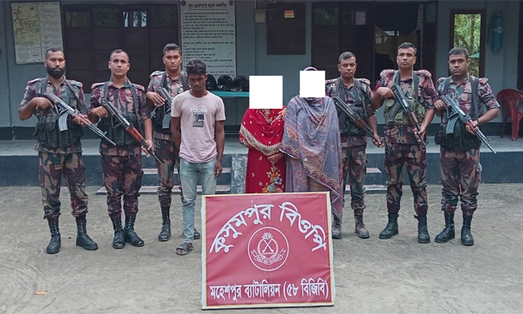 In a press release, Assistant Director of BGB-58 Munshi Imdadur Rahman said a special patrol team, led by Habildar Sahor Ali, conducted a raid at Kusumpur border outpost and arrested Rashed Mia, 20, Probas, 45, Prosenjit, 26, along with four women and two children.