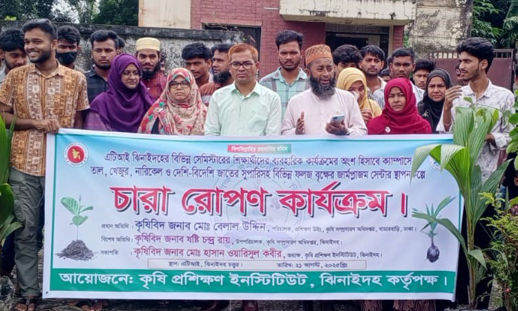 JHENAIDAH, Aug 21, 2025 (BSS) – Students of Jhenaidah Agricultural Training Institute today planted over 1,200 saplings on the campus as part of a tree plantation campaign to build a green institute.
