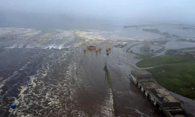 The surge of water reached as far as the town's World War II monument about 400 meters from the shoreline, said Mayor Alexander Ovsyannikov.