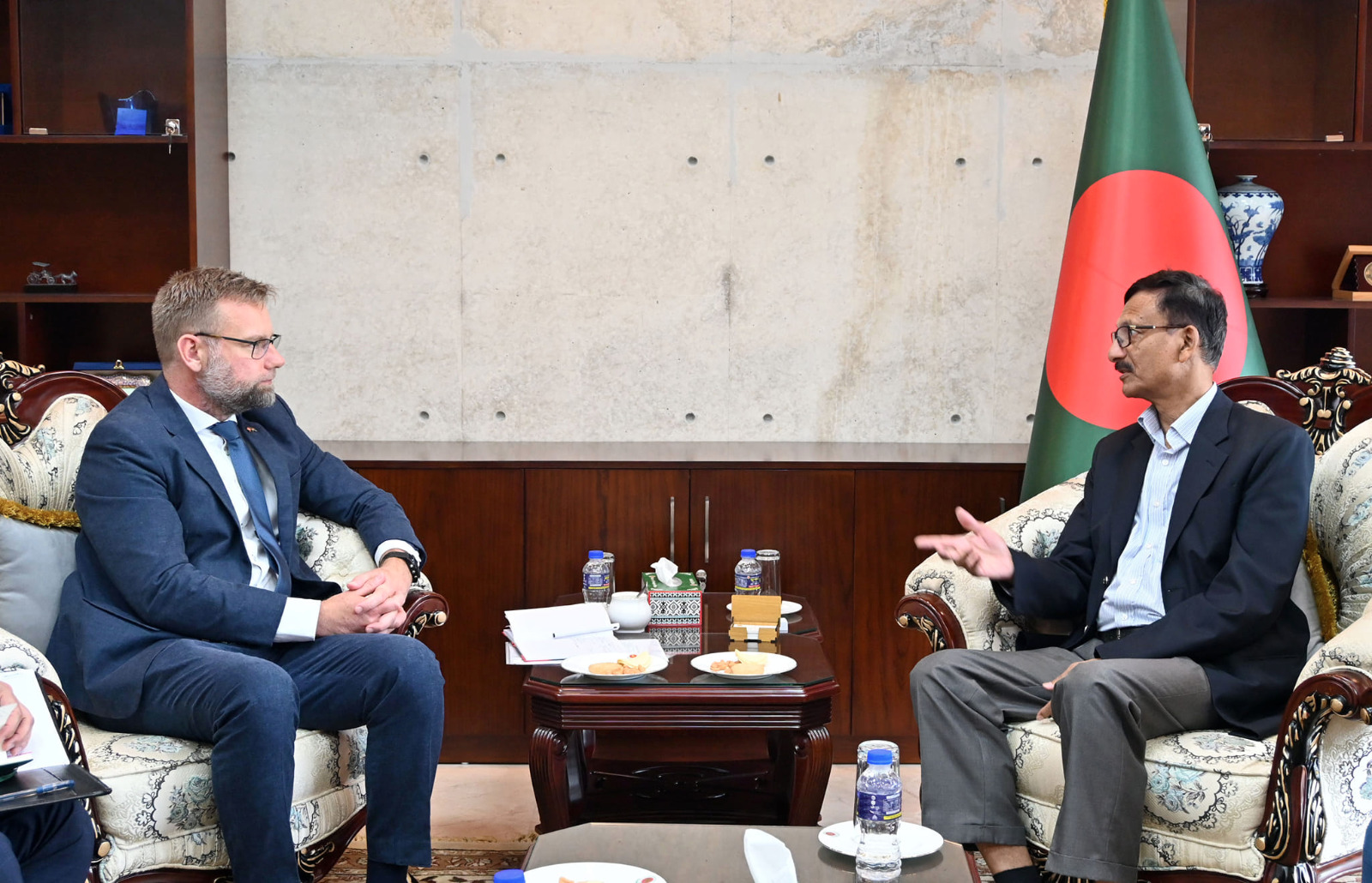 The envoy shared Denmark's priorities of engagement with Bangladesh, particularly in green transition, and updated the foreign adviser on the two priority projects of Denmark - construction and operation of Laldia Container Terminal in Chattogram by APM Terminals and production of 500 MW of offshore wind energy.