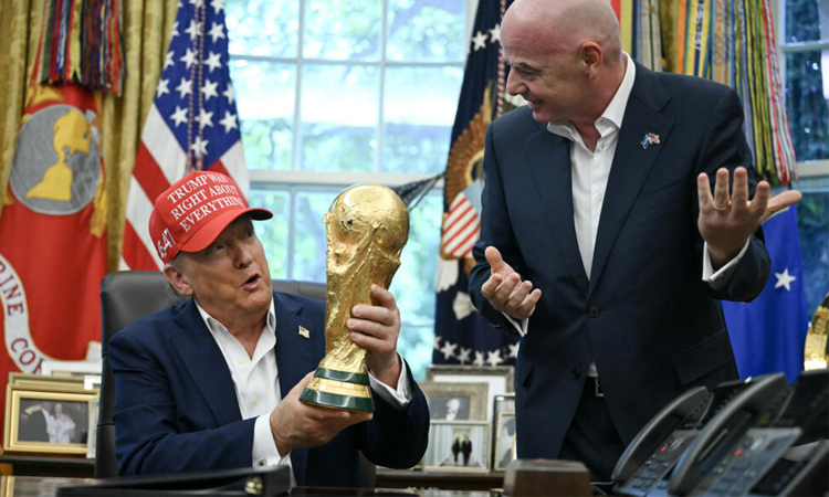 Infantino later presented the US leader with a giant ticket -- Row 1 Seat 1 -- for the World Cup final on July 19 at the MetLife stadium in East Rutherford, New Jersey, just outside New York.