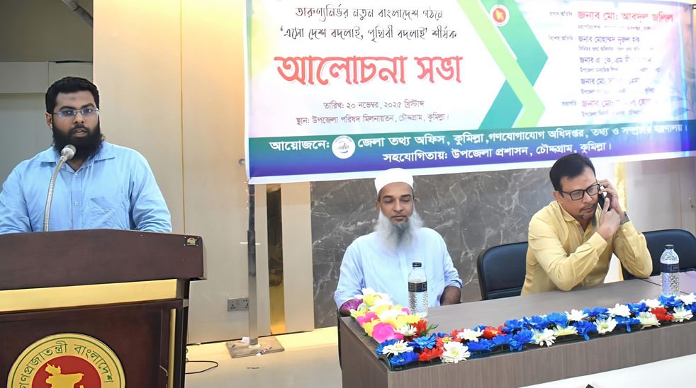 কুমিল্লা, (দক্ষিণ) ২০ নভেম্বর (বাসস) : নতুন বাংলাদেশ গড়ে তুলতে জেলার চৌদ্দগ্রামে ‘এসো দেশ বদলাই, পৃথিবী বদলাই’ শীর্ষক তারুন্য নির্ভর এক আলোচনা সভা অনুষ্ঠিত হয়েছে।