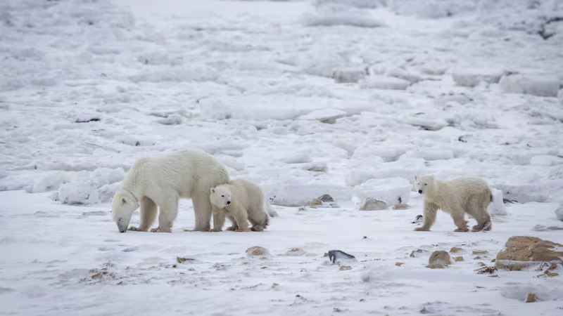 গবেষকদের ধারণ করা ভিডিও ফুটেজে দেখা যায়, বরফে ঢাকা বিস্তীর্ণ প্রাকৃতিক পরিবেশ পর্যবেক্ষণ করছে দুই শাবক, আর তাদের পেছনে পায়চারি করছে মা ভালুক।