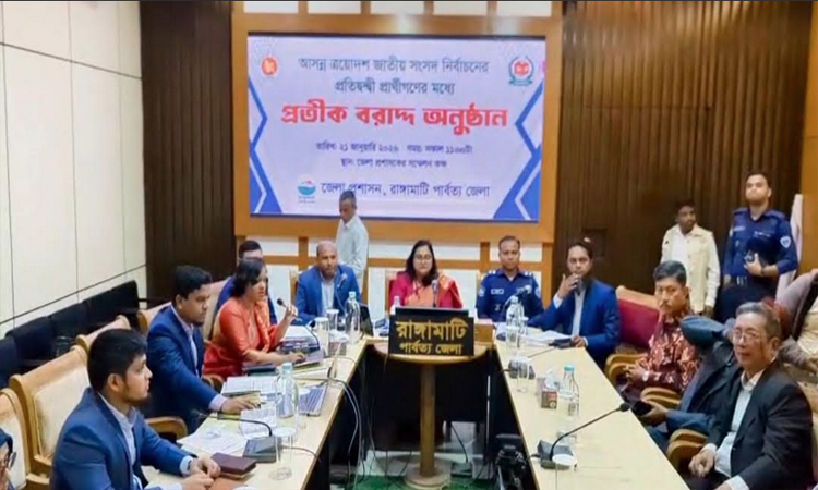 রাঙ্গামাটি, ২১ জানুয়ারি, ২০২৬ (বাসস) : আসন্ন ত্রয়োদশ জাতীয় সংসদ নির্বাচন উপলক্ষে রাঙ্গামাটি-২৯৯ আসনে ৭ প্রতিদ্বন্দ্বী প্রার্থীর মধ্যে প্রতীক বরাদ্দ করা হয়েছে।