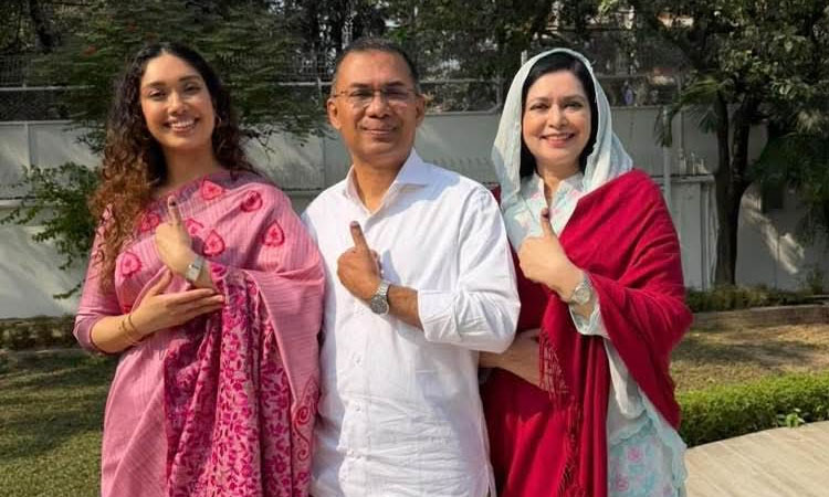বিএনপি চেয়ারম্যান তারেক রহমান ও তাঁর পরিবারের সদস্যরা আজ সকালে ভোট দেন। ছবি : বাসস