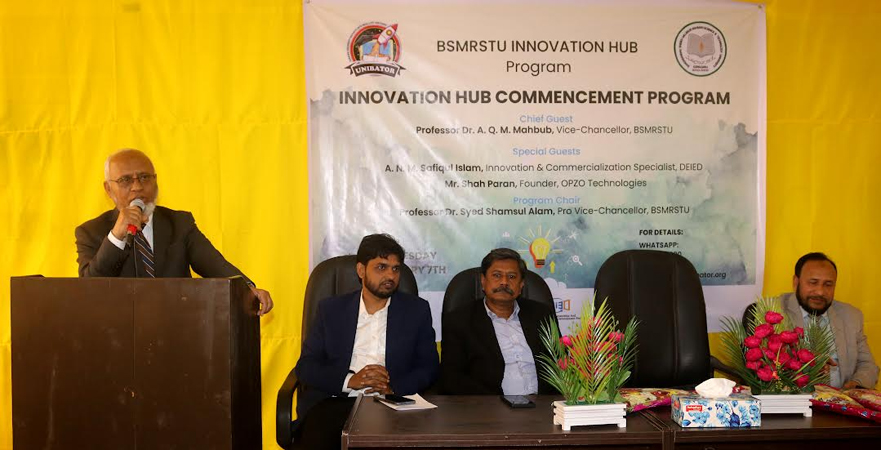 টুঙ্গিপাড়া (গোপালগঞ্জ), ৭ ফেব্রুয়ারি, ২০২৪ (বাসস): গোপালগঞ্জ বঙ্গবন্ধু শেখ মুজিবুর রহমান বিজ্ঞান ও প্রযুক্তি বিশ্ববিদ্যালয়ে (বশেমুরবিপ্রবি) ইনোভেশন হাব প্রোগ্রাম চালু হয়েছে। আজ বুধবার বিশ্ববিদ্যালয়ের একাডেমিক ভবনে প্রোগ্রামের উদ্বোধনী অনুষ্ঠানে প্রধান অতিথি ছিলেন বিশ^বিদ্যালয়ের ভাইস-চ্যান্সেলর অধ্যাপক ড. এ. কিউ. এম. মাহবুব।