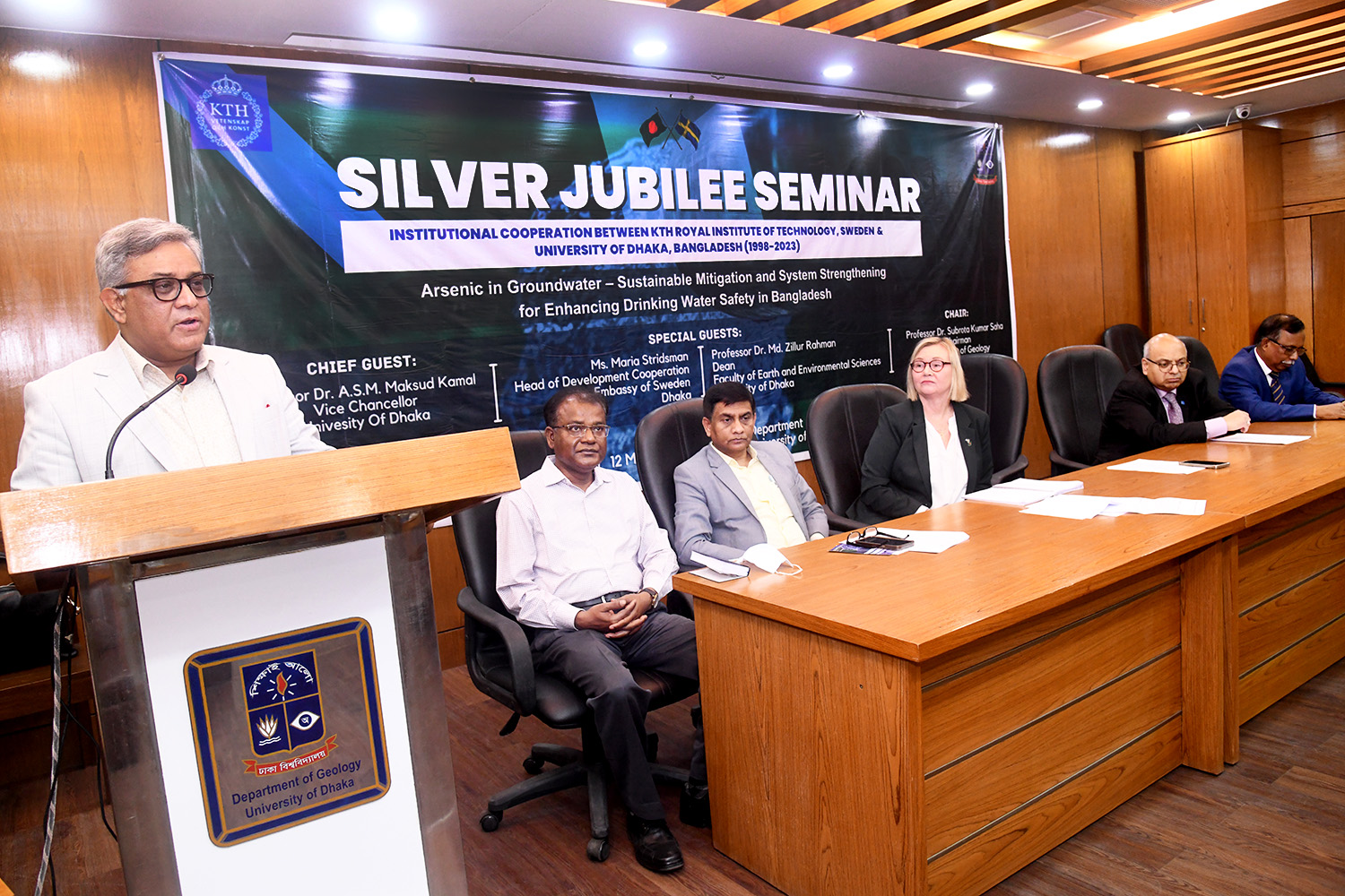 উল্লেখ্য, ঢাকা বিশ^বিদ্যালয় ভূতত্ত্ব বিভাগ এবং কেটিএইচ রয়েল ইনস্টিটিউট অফ টেকনোলজি সুইডেন বিভিন্ন গবেষণা ফান্ডের অর্থায়নে বাংলাদেশের ভূগর্ভস্থ পানিতে আর্সেনিক দূষণ রোধ এবং নিরাপদ ও বিশুদ্ধ খাবার পানি নিশ্চিত করতে দীর্ঘ ২৫ বছর ধরে যৌথ সহযোগিতামূলক গবেষণা কার্যক্রম পরিচালনা করে আসছে।