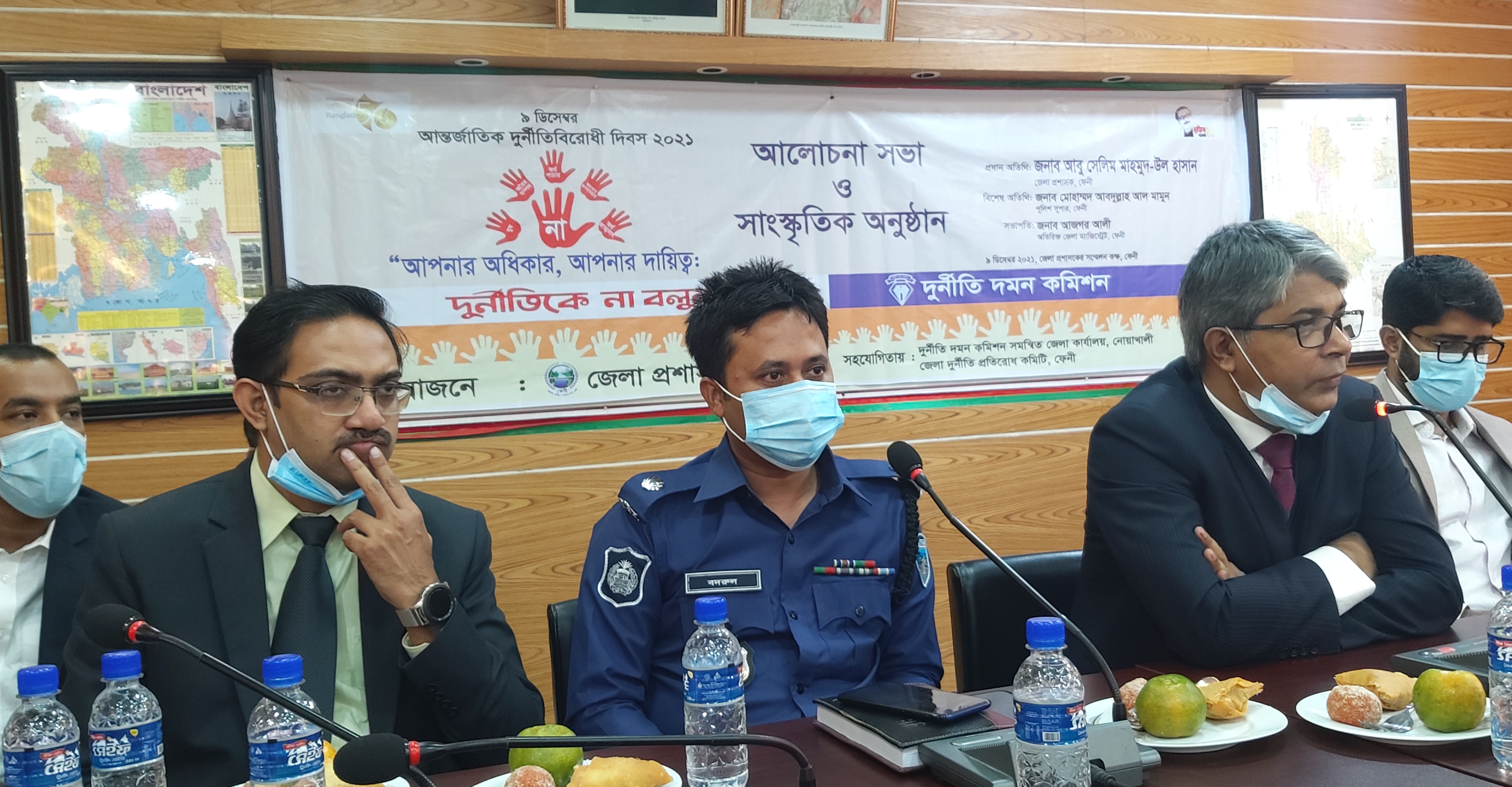 ফেনী, ৯ ডিসেম্বর ২০০২১ (বাসস) : জেলায় আজ আন্তর্জাতিক দুর্নীতিবিরোধী দিবস উপলক্ষে আলোচনা ও সাংস্কৃতিক অনুষ্ঠানের আয়োজন করা হয়। সকালে জেলা প্রশাসকের কার্যালয়ে অনুষ্ঠিত সভায় প্রধান অতিথি ছিলেন জেলা প্রশাসক আবু সেলিম মাহমুদ-উল হাসান।