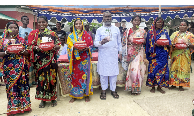 নওগাঁ, ৮ অক্টোবর, ২০২৫ (বাসস) : উপজেলা বিএনপির সহ-সভাপতি নুরুল ইসলামের উদ্যোগে জেলার সমতলের আদিবাসী ২০ জন নারী কৃষককে সম্মাননা প্রদান করা হয়েছে। সম্মাননা হিসাবে তাদের প্রত্যেককে দেয়া হয়েছে রঙ্গিন মাটির হাড়ি ভরা ধানের বীজ ও একটি ফলের চারা। ফসলের লক্ষ্মী নারী কৃষকদের দেয়া এ ব্যতিক্রমী (সম্মাননা) উদ্যোগকে সাধুবাদ জানিয়েছেন স্থানীয়রা।