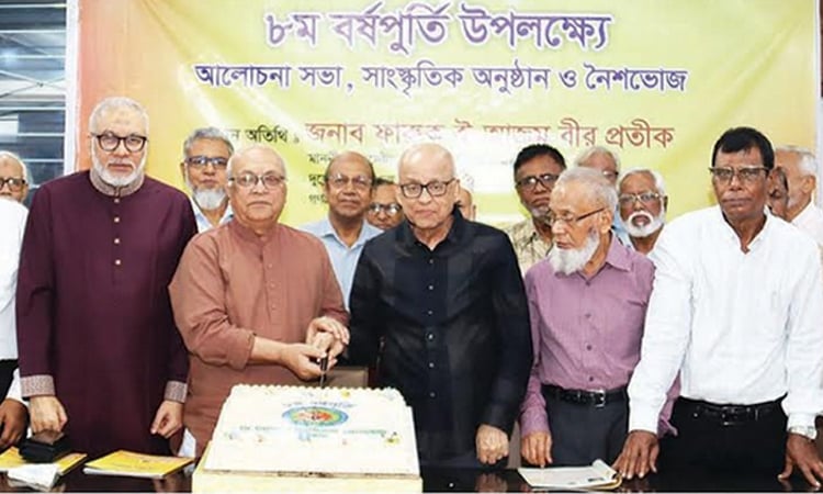 মুক্তিযোদ্ধা এবং দুর্যোগ ও ত্রাণ উপদেষ্টা ফারুক ই আজম শুক্রবার চট্টগ্রামে 'দি সিনিয়র সিটিজেন্স সোসাইটির' ৮ম বর্ষপূর্তি উপলক্ষ্যে আয়োজিত অনুষ্ঠানে কেক কাটেন। ছবি : পিআইডি