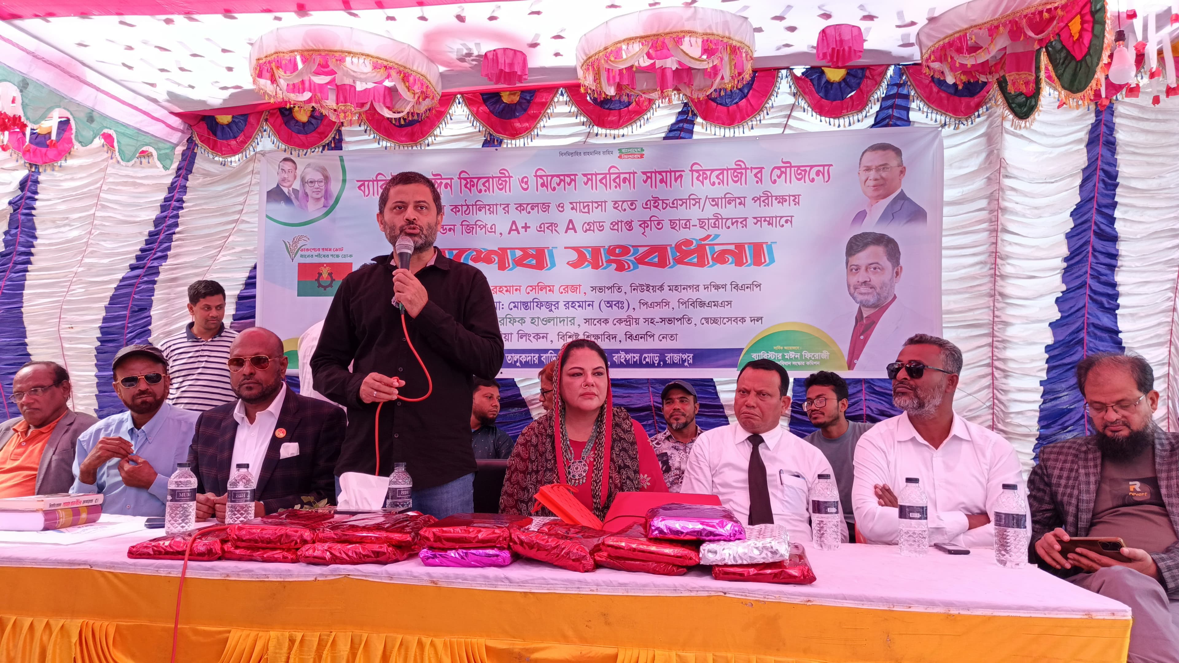 সংবিধান সংস্কার কমিশনের সাবেক সদস্য ব্যারিস্টার মঈন ফিরোজীর সভাপতিত্বে অনুষ্ঠিত সংবর্ধনা অনুষ্ঠানে ব্যারিস্টার মঈন ফিরোজী বলেন, রাজাপুর ও কাঠালিয়ার শিক্ষার্থীরা বারবার প্রমাণ করেছে—সুযোগ পেলে তারা দেশের জন্য মেধা ও যোগ্যতার সর্বোচ্চ প্রকাশ ঘটাতে পারে। ভবিষ্যতেও আমরা তাদের পাশে থাকব।