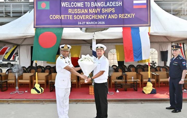 চট্টগ্রাম, ২৪ মার্চ, ২০২৬ (বাসস) : বাংলাদেশে চার দিনের শুভেচ্ছা সফরে রাশিয়ান নৌবাহিনীর দু’টি জাহাজ রেজকি এবং সোভারচেনি চট্টগ্রামে পৌঁছেছে।