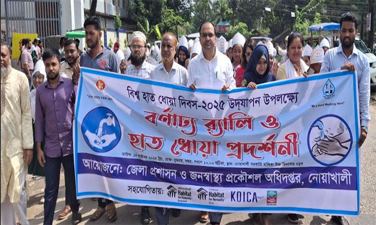 নোয়াখালী, ১৫ অক্টোবর, (বাসস):বিশ্ব হাত ধোয়া দিবস-২০২৫ উপলক্ষে জেলায় বর্ণাঢ্য র্যালি ও হাত ধোয়া প্রদর্শনী অনুষ্ঠিত হয়েছে।
