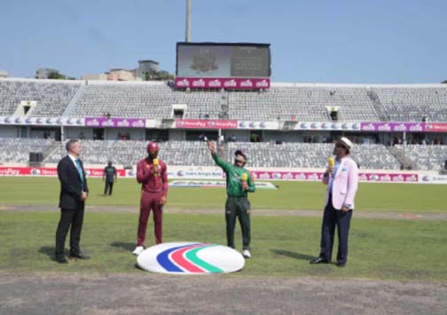 ঢাকা, ২১ অক্টোবর ২০২৫ (বাসস) : মিরপুর শেরে বাংলা জাতীয় ক্রিকেট স্টেডিয়ামে তিন ম্যাচ সিরিজের দ্বিতীয় ওয়ানডেতে ওয়েস্ট ইন্ডিজের বিপক্ষে টস জিতে প্রথমে ব্যাটিংয়ে স্বাগতিক বাংলাদেশ।