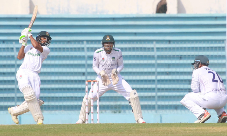জবাবে বাঁ-হাতি স্পিনার রাকিবুল ইসলামের ঘূর্ণিতে দ্বিতীয় দিন শেষে ৫ উইকেটে ১৯৮ রান করেছে সিলেট। ৫ উইকেট হাতে নিয়ে এখনও ২০৩ রানে পিছিয়ে সিলেট।