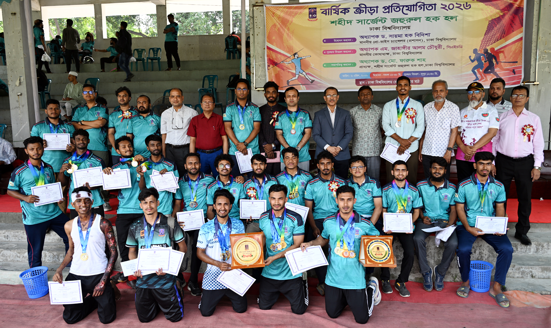 ঢাকা, ৬ এপ্রিল ২০২৬ (বাসস) : ঢাকা বিশ্ববিদ্যালয় শহীদ সার্জেন্ট জহুরুল হক হলের বার্ষিক ক্রীড়া প্রতিযোগিতায় ডেভেলপমেন্ট স্টাডিজ বিভাগের খালিদ মুহিবুল্লাহ এবং রাষ্ট্রবিজ্ঞান বিভাগের সারজিল হাসান খান জিদান যৌথভাবে চ্যাম্পিয়ন হয়েছেন।