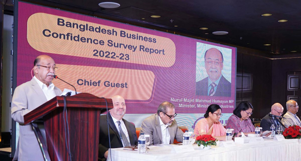 Sameer Sattar, president of DCCI, said that they have found an optimistic view from the Business Confidence Survey 2022-23. "This survey found that our business community is showing confidence and resilience... the cost of doing business needs to be minimized. CMSMEs are suffering from multiple issues. Getting finance is one of the challenges for CMSMEs. We would recommend removing the medium from the CMSME category."