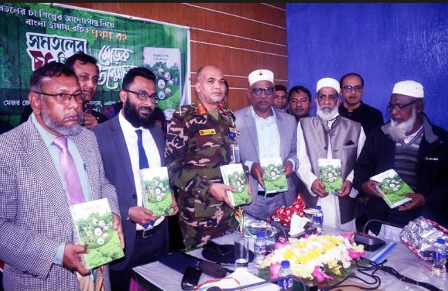 Bangladesh Tea Board (BTB) Chairman Major General Md. Ashraful Islam, ndc, psc, unveiled the cover of a book titled "Samatler Cha Shilpa" (Tea Industry of Plain) written in Bengali on the beginnings of the plain land tea industry.