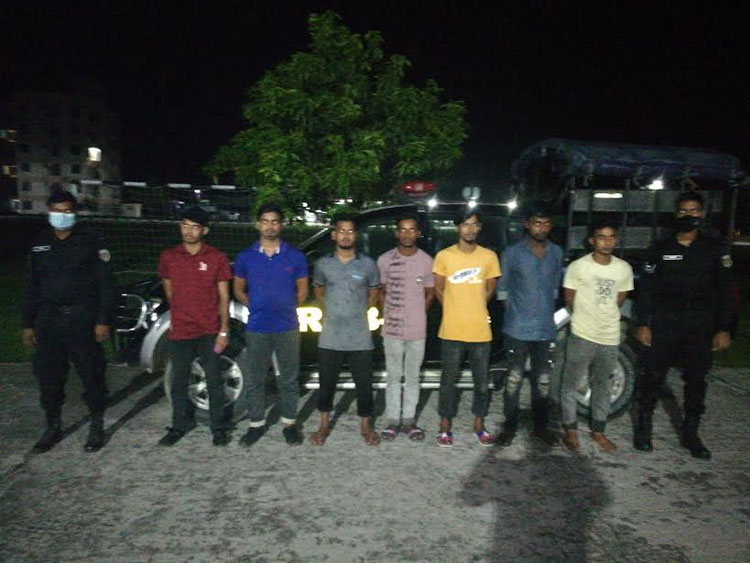 RAB sources said the arrested persons were identified as Muhammad Sagar, 19, Rubel Hossain, 22, Dipu Ghosh, 19, Azim Uddin, 24, Masud Rana, 21, Muhammad Jewel, 19, and Bakul Hossain, 21.