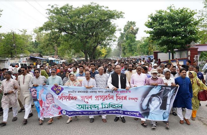 RAJSHAHI, May 17, 2023 (BSS)-Bangladesh Awami League (AL) and its front organisations today observed the Homecoming Day of Prime Minister Sheikh Hasina in the city and its adjacent areas in a befitting manner.