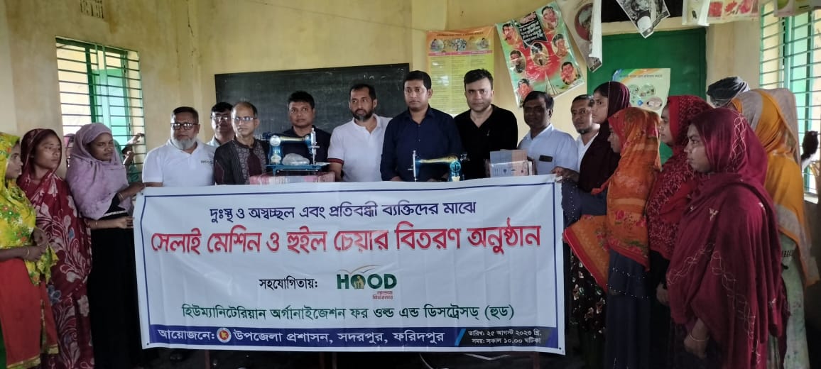 FARIDPUR, Aug 25, 2023 (BSS) - Members of Humanitarian Organisation for Old and Distressed (HOOD), a non-profitable organization today distributed 10 sewing machines, wheelchairs and cash to women at Sadarpur here.