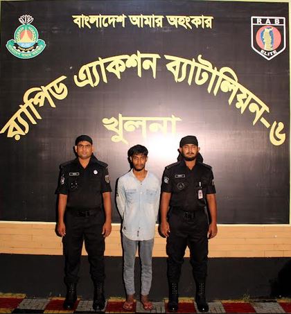 Being informed, a teal of Khulna RAB-6 raided in Kaiya Bazar area and arrested Sumon with a shooter gun, four cartridges and a mobile phone set.