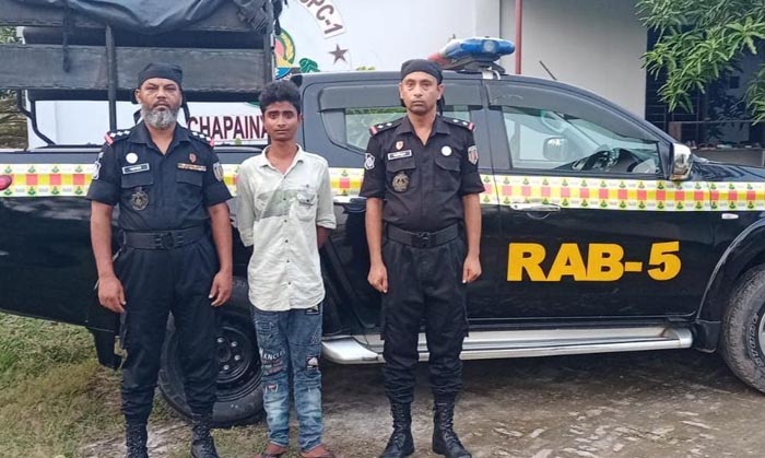 The arrested was identified as Mehedi Hassan, 20, son of late Saidur Rahman of Labhanga village in Shibganj Upazila of Chapainawabganj district, the RAB sources said this morning.