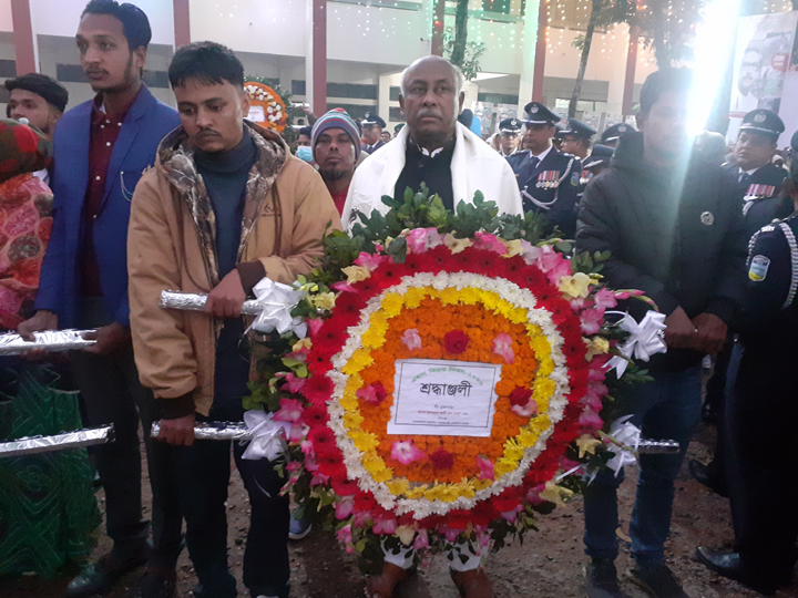 Later, Habiba Rahman Khan Shefali, MP, deputy commissioner (DC) Shahed Parvez, chairman of Zila parishad Asit Kumar Sarker Sazal, superintendent of police (SP) Foyaz Ahmed and municipality mayor Nazrul Islam Khan placed wreaths at the monument.
