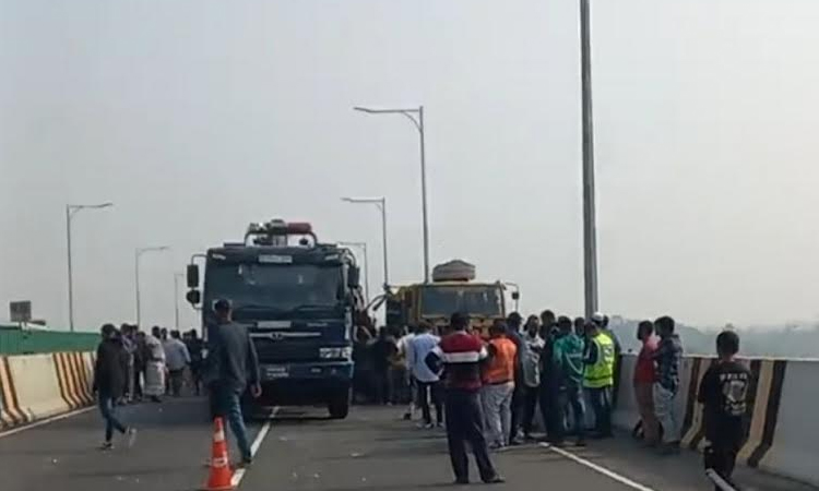 Quoting local resident Protap Das, police said the bus hit the truck with a loud bang on the Bhanga-Shibchar lane, leaving the front portion of the vehicle extensively damaged.