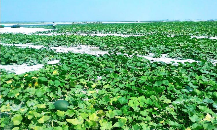 They are expanding cultivation of pumpkin adopting mixed relay and intercropping methods with onion, garlic, banana, vegetables, green chili, squash, potato, brinjal, sweet potato and other Rabi crops on the sandy char lands and dried-up riverbeds this season.
