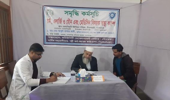 Specialists Dr Abul Bashar Sadi and Dr Tanmoy Pal from Bagerhat 250-bed Hospital provided medical services at the camp, which drew a huge response as 200 patients received free treatment.