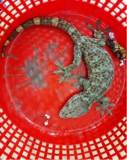 The recovered gecko was thirteen inches long, quoting locals district police said in a press release on Thursday afternoon.