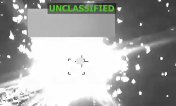 Like some previous videos released by the US government, a section of the boat is obfuscated for unspecified reasons.