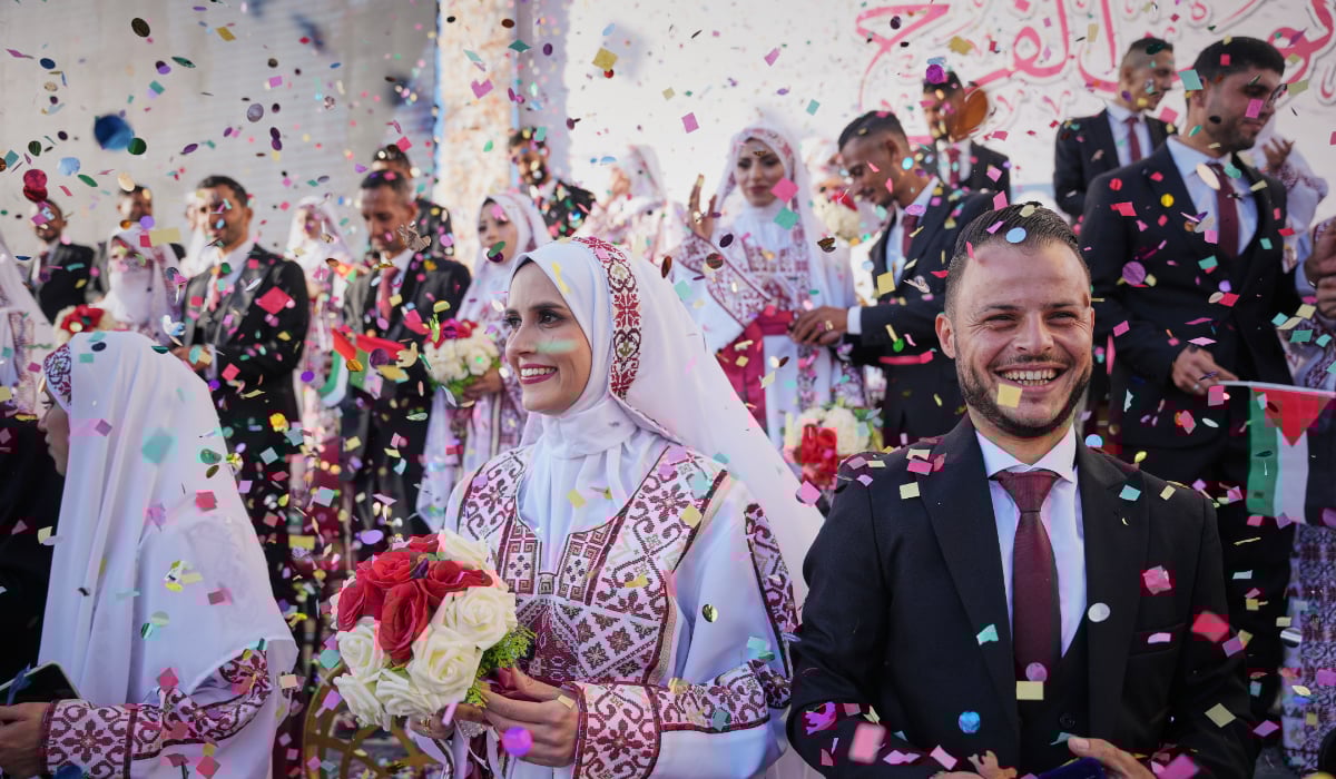 KHAN YUNIS, Palestinian Territories, Dec 3, 2025 (BSS/AFP) - The couples walked hand in hand, the brides in traditional embroidered Palestinian white and red dresses adorned with red ribbons, the grooms walked beside them in black suits and ties.