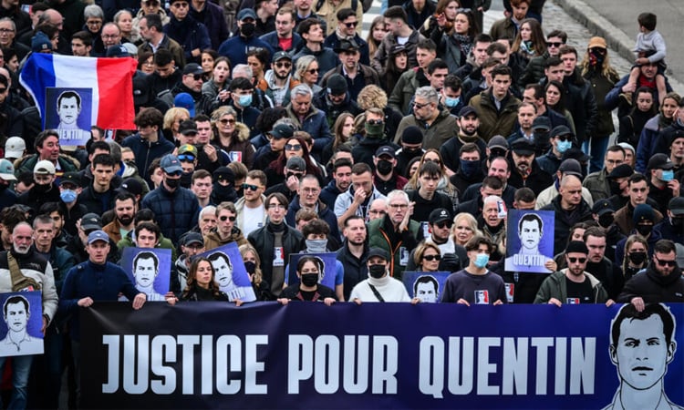 Mourners had first gathered in the church frequented by Deranque before his death and his portrait was hung from the facade of the administrative headquarters of the Auvergne-Rh“ne-Alpes region.