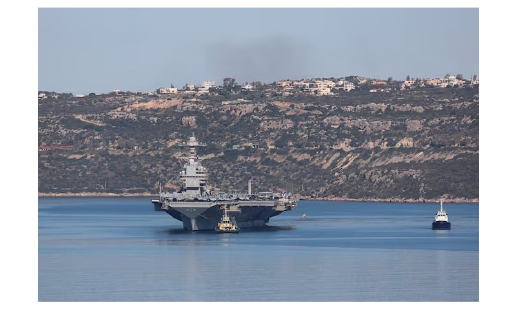 The USS Gerald R. Ford, the world's biggest aircraft carrier, passed through Souda at the end of February.