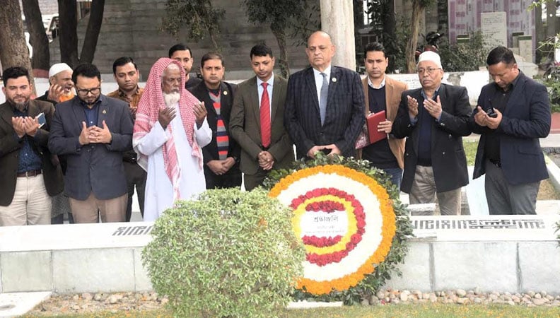 journalists while placing wreaths at the grave of his childhood friend Sheikh