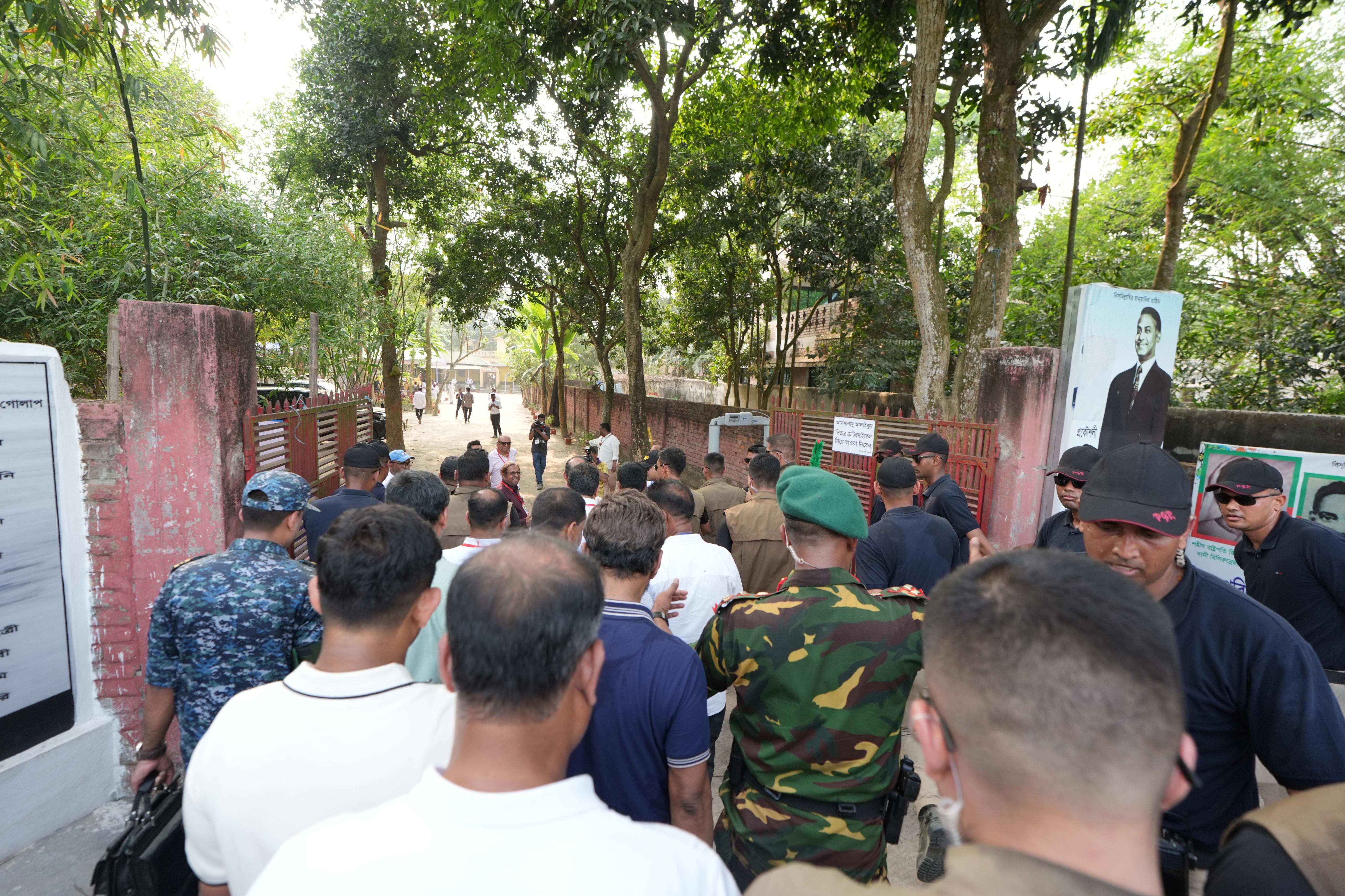 Anwar Hossain, a tea seller at Bagbari Bazar, said, "Our son has come to his own home . . . this is great happiness for us. He had come once before, but was not Prime Minister then. Now he is Prime Minister."