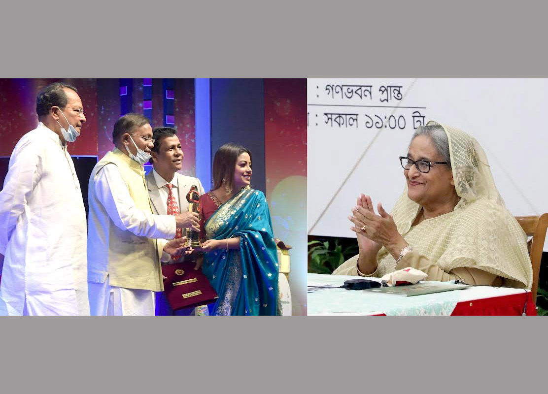 She conferred the awards, the highest recognition of the contribution of artistes to Bangladeshi films, as the chief guest, joining virtually the function from her official Ganabhaban residence here this morning.
