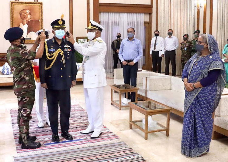 “Chief of Army Staff General S M Shafiuddin Ahmed and Acting Chief of Naval Staff Rear Admiral M Abu Ashraf adorned the air chief with the rank badge of Air Chief Marshal,” Prime Minister’s Assistant Press Secretary MM Emrul Kayas told BSS.
