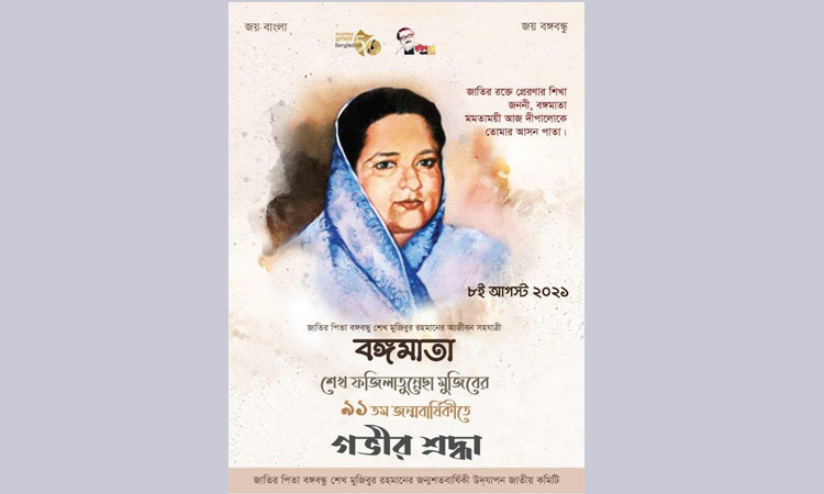 DHAKA, Aug 7, 2021 (BSS) – Marking the 91st birth anniversary of Bangamata Sheikh Fazilatun Nesa Mujib, two e-posters have been released to use in print, electronic, online and social media.