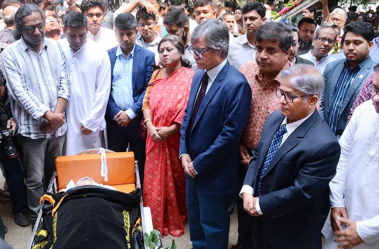 Dr Akhtaruzzaman laid wreaths at her coffin as her body was brought to fine arts faculty premises of the university to allow people to pay their homage, said a press release.