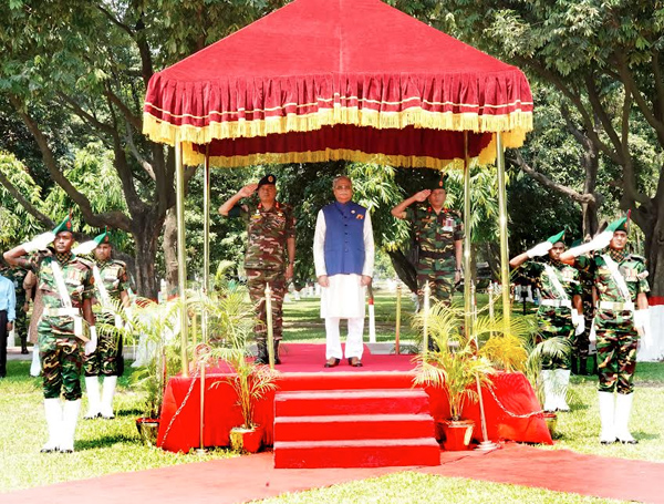 On his arrival at Bangabhaban, a smart contingent of the horse-mounted President Guard Regiment (PGR) welcomed the President at the main gate.