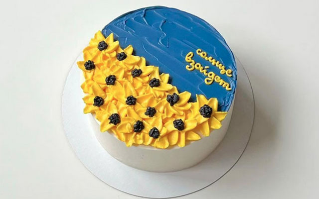 In March, Chernysheva posted a picture of a white cake featuring the message written in rainbow letters on the icing. Another featured an icing in the national blue-and-yellow colours of Ukraine.