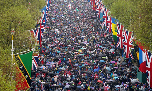 Following Saturday's glittering ceremony at London's Westminster Abbey featuring royalty and leaders from around the world, the emphasis shifted to a chance for the public to mark the "Carolean" age after Queen Elizabeth II's 70-year reign.