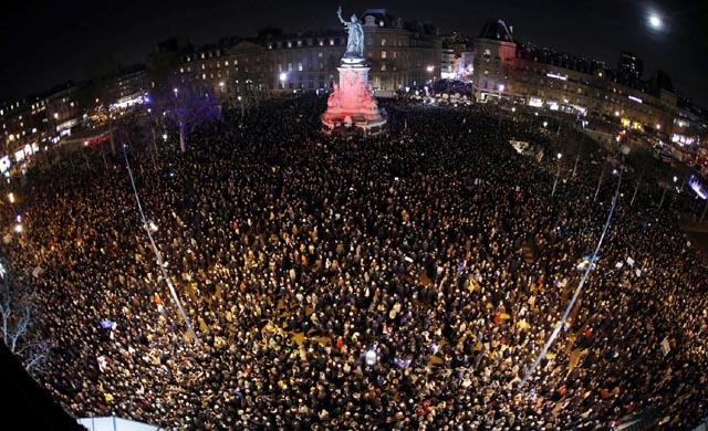 He said Sunday's "great civic march" should show France as "united behind its values, its universalism".