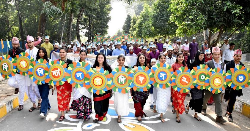 A colourful procession led by VC Professor Dr Mahmud Hossain was brought out from Hadi Square that paraded around Shaheed Minar, Adommya Bangla and Katka Monument, a memorial built in the memory of KU students who drowned at Katka in the Bay of Bengal in 2004.