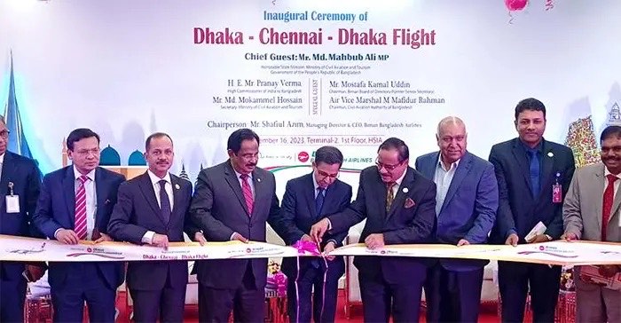 The inaugural flight operated by Boeing 737 carrying 161 passengers took off from Dhaka's Hazrat Shahjalal International Airport (HSIA) at 12.50 pm (local time) and is scheduled to reach Chennai International Airport in India at 3:20 pm (local time).