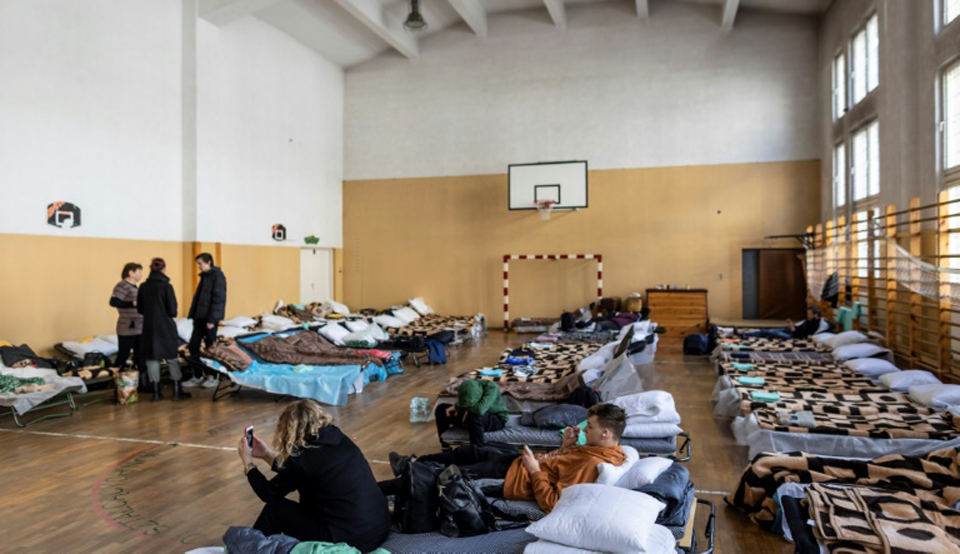 have been fleeing Ukraine for Poland, many on packed trains arriving at the